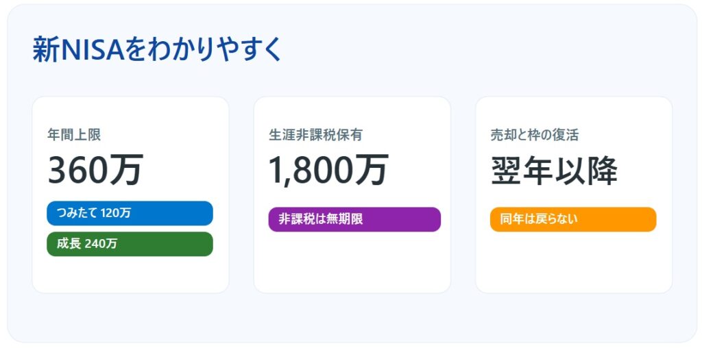 この3点を押さえるだけで、新NISAの仕組みはほぼ理解できます。